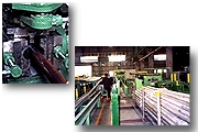 Raw material projection - Inspecting the SPEC, dimensions, inner BEAD state and aspect(external appearance) after the raw materials of steel pipes are stacked. Heat treatment process - The carbon steel pipes manufactured according to KS standard are classified into two groups, black and white. Pipe products such as SRM, ERW. HR, CR are treated thermally at the temperature of 680~730 degree C and then cooled at the cooling zone. It is possible to control the temperatures according to the product uses. The capacity of heat treatment is about 2.5~3 ton per hour. |